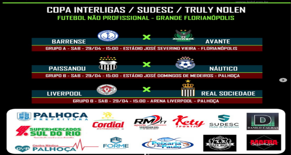 COPA INTERLIGAS – 2ª Rodada para os Clubes de Palhoça.