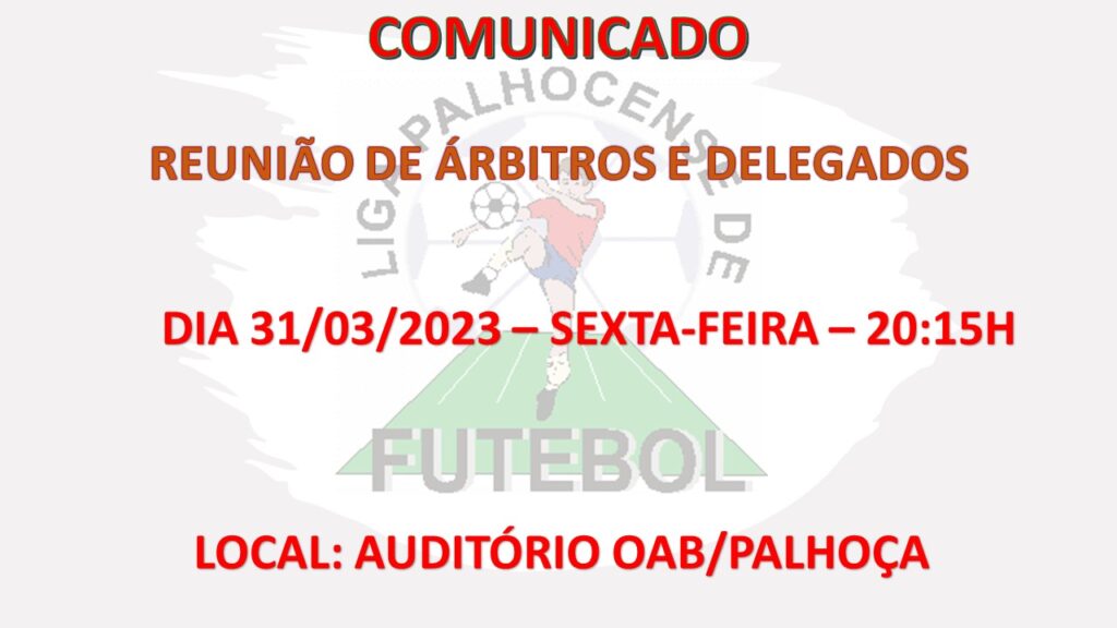 Nesta sexta-feira, dia 31/03/2023, às 20:15h, realizaremos uma reunião com os árbitros, assistentes e delegados…
